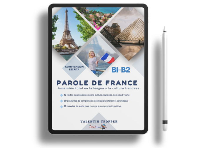 Découvrez "Parole de France" 🇫🇷, l'E-book incontournable pour les hispanophones apprenant le français ! 72 pages de textes captivants sur la culture française, accompagnés de questions de compréhension écrite. 38 minutes d'audio inclus pour améliorer votre compréhension orale. Un voyage linguistique fascinant qui vous mènera vers le niveau B1-B2. Prêt à explorer la richesse du français ? 📚🌍